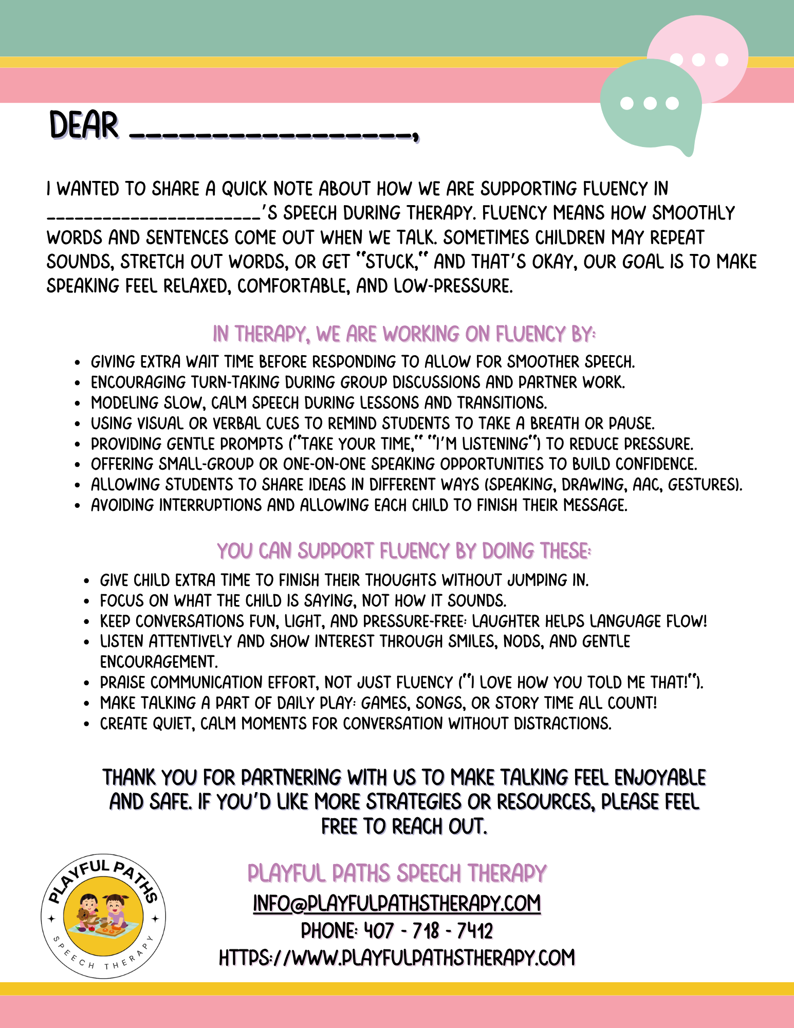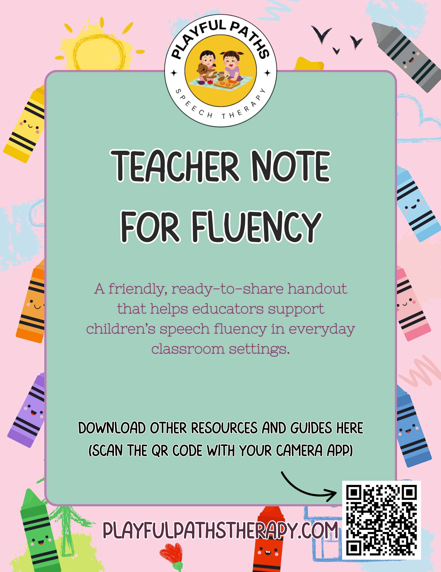 Help your students find their voice with Teacher Note for Fluency, a free printable resource from Playful Paths Speech Therapy.