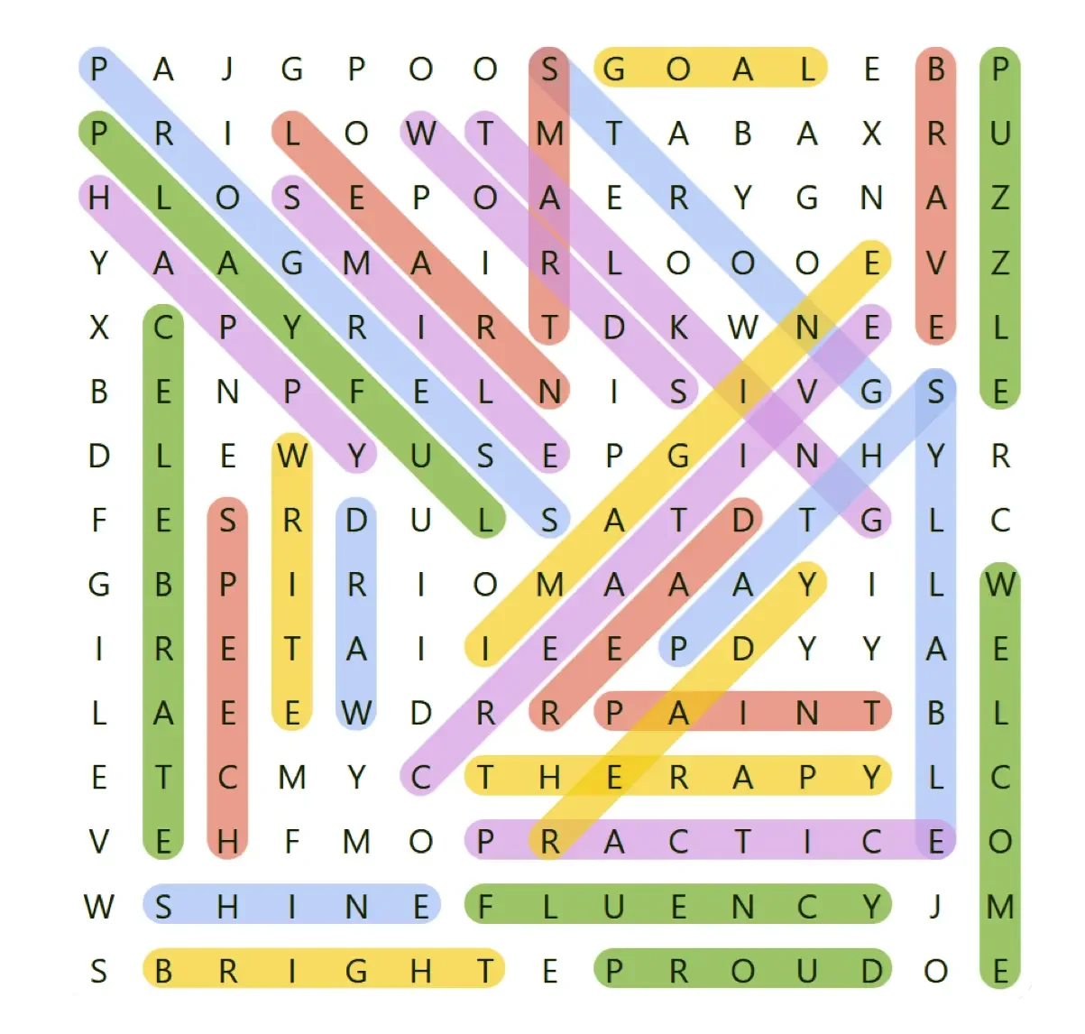 Get ready to put your eyes and brain to the test as you hunt for hidden words in a sea of letters. Each puzzle is packed with words you know and love—perfect for practicing speech, language, and reading skills while having a blast. Whether you’re searching for animals, foods, action words, or seasonal surprises, every find is a little win on your journey—one playful path at a time!